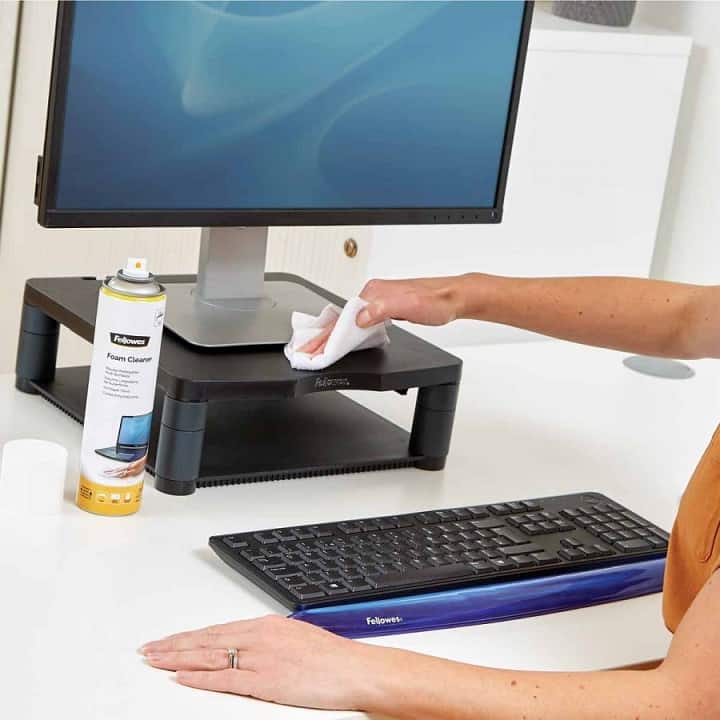 Utrzymuj czystość i świeżość w swoim miejscu pracy dzięki piance głęboko czyszczącej do powierzchni Piana wnika głęboko w pęknięcia i szczeliny usuwając brud i tłuszcz zapewniając głębokie czyszczenie Zaprojektowana do stosowania na powierzchniach plastikowych, metalowych i laminowanych (w tym na białych tablicach, klawiaturach, drukarkach i biurkach) Pianka do czyszczenie 400 ml posiada przyjazną dla ozonu formułę (bez HFC) Spryskaj ściereczkę z mikrofibry (nie jest dołączona do produktu) i poleruj do sucha Przed użyciem zawsze zapoznaj się z instrukcją obsługi czyszczonego urządzenia lub przetestuj na niewielkim obszarze urządzenia Nie stosuj na powierzchniach szklanych (ekranach lub filtrach) Środek łatwopalny