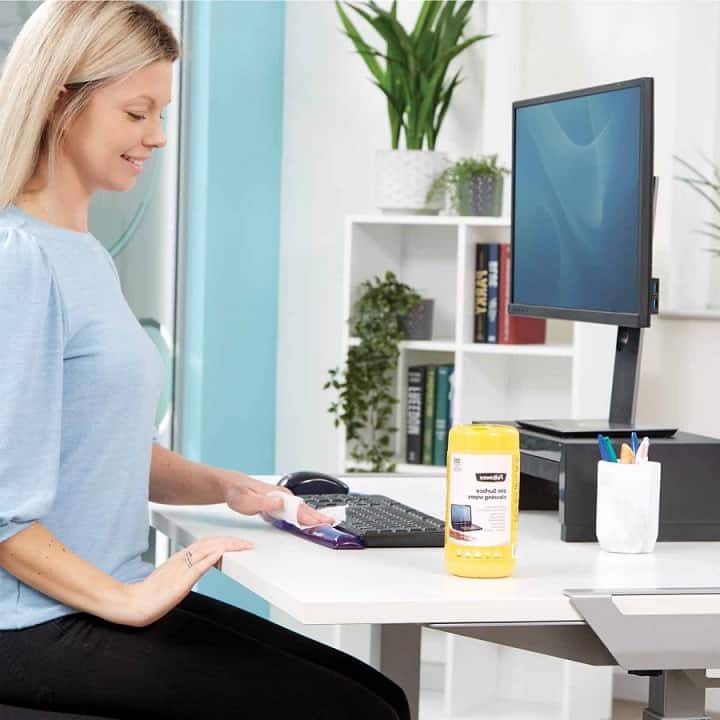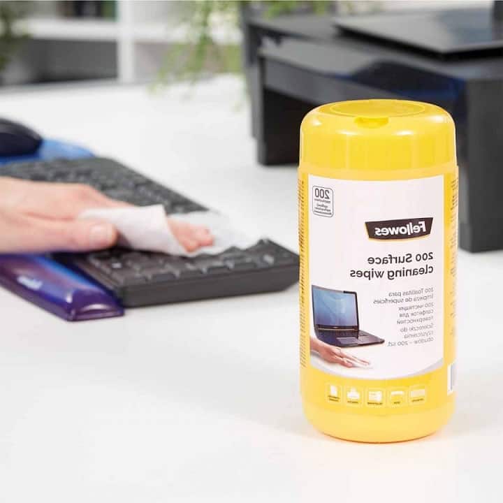 Utrzymuj czystość swojego miejsca pracy dzięki naszym bezalkoholowym chusteczkom do czyszczenia powierzchni. Pojemne opakowanie zawierające 200 chusteczek do czyszczenia powierzchni – doskonałe do użytku we wspólnych i dużych przestrzeniach roboczych. Zaprojektowane, aby delikatnie usuwać brud i tłuszcz z powierzchni plastikowych, metalowych i laminowanych, w tym klawiatur, drukarek i biurek. Przechowywane w poręcznej, zamykanej tubie, która pomaga zachować ich wilgotność, a jednocześnie sprawia, że można je łatwo wyjąć. Przed użyciem zawsze zapoznaj się z instrukcją obsługi czyszczonego urządzenia lub przetestuj ściereczki na małej powierzchni.